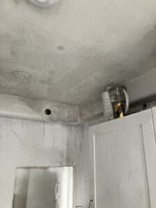 Activated, kitchen sidewall sprinkler head Minor smoke, soot visible above the seat of the fire